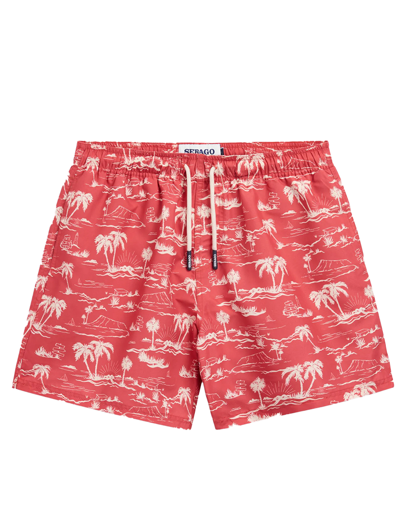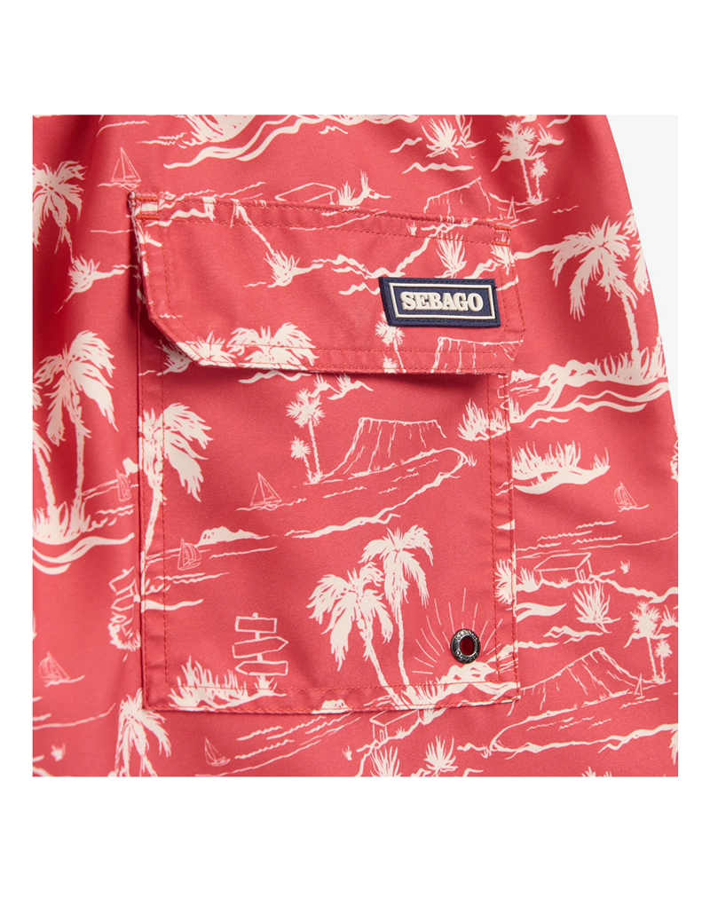 Costume boxer da uomo in 100% poliestere leggero e traspirante con stampa all over pesci. Presenta un elastico in vita con coulisse e tasche funzionali sui fianchi e una sul retro con occhielli che lasciano passare l'acqua. Lo slip interno in microrete offre il massimo comfort anche durante il nuoto e lo sport in spiaggia. Pratica sacchetta per richiuderlo e riporlo. Logo Sebago applicato sulla patta della taschina posteriore.