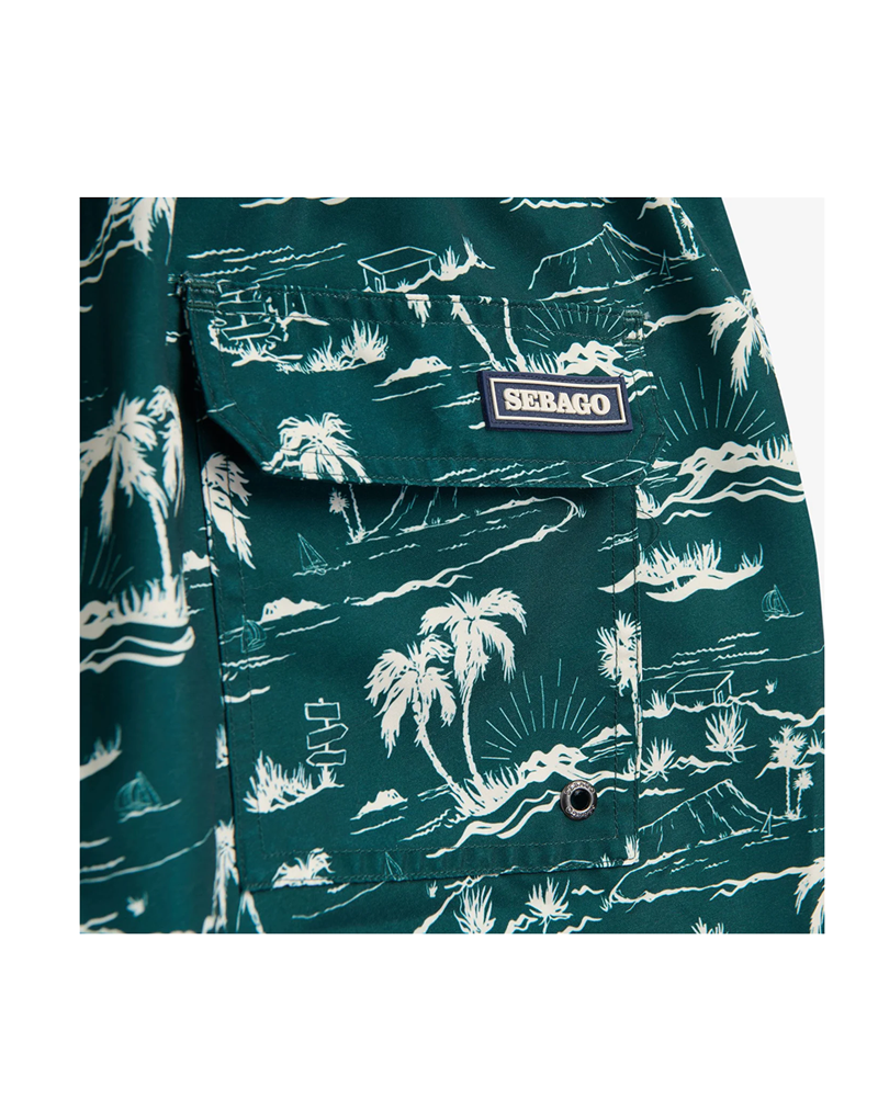Costume boxer da uomo in 100% poliestere leggero e traspirante con stampa all over pesci. Presenta un elastico in vita con coulisse e tasche funzionali sui fianchi e una sul retro con occhielli che lasciano passare l'acqua. Lo slip interno in microrete offre il massimo comfort anche durante il nuoto e lo sport in spiaggia. Pratica sacchetta per richiuderlo e riporlo. Logo Sebago applicato sulla patta della taschina posteriore.