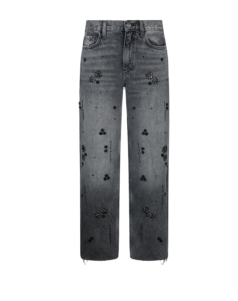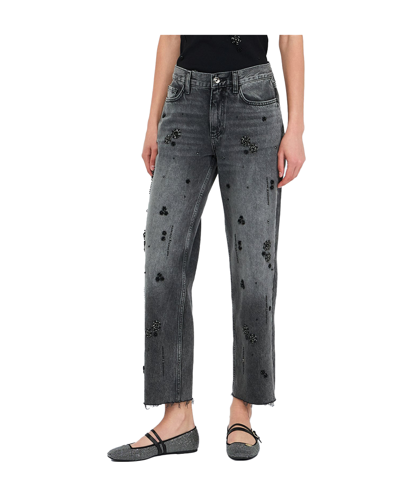 JEANS DONNA STRAIGHT CON APPLICAZIONI STRASS - DENIM GRIGIO