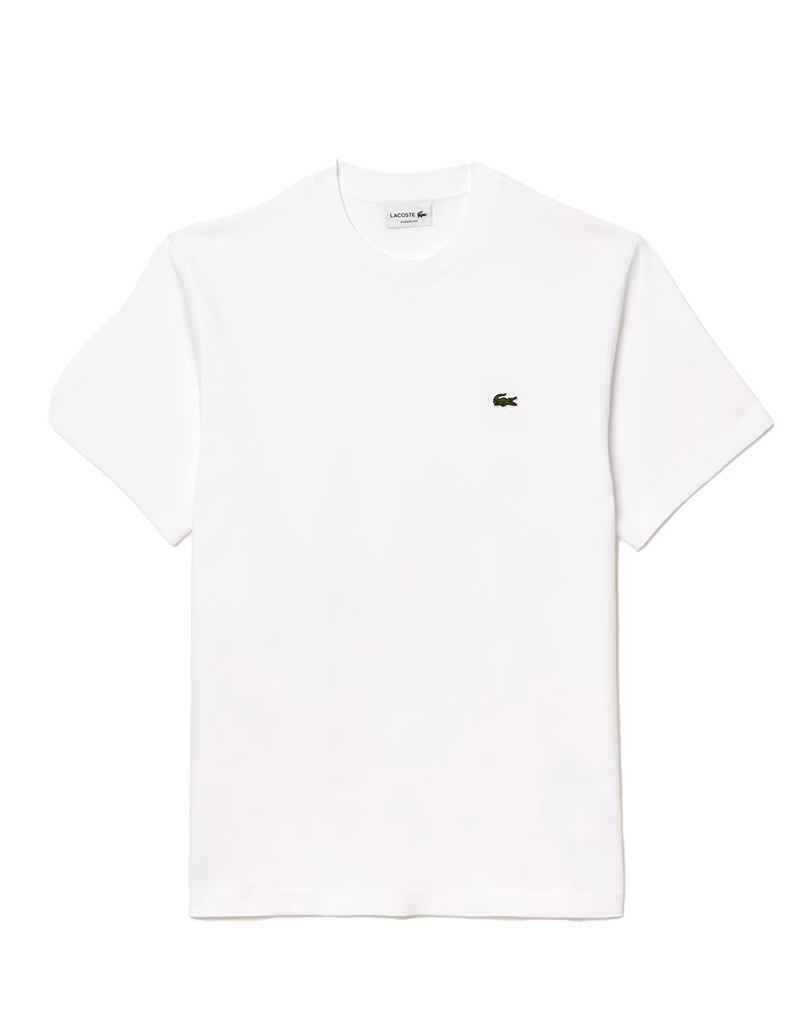 Classica t-shirt uomo di Lacoste in 100% cotone di media pesantezza con iconico coccodrillo lato cuore. Peso: 180 g/m².