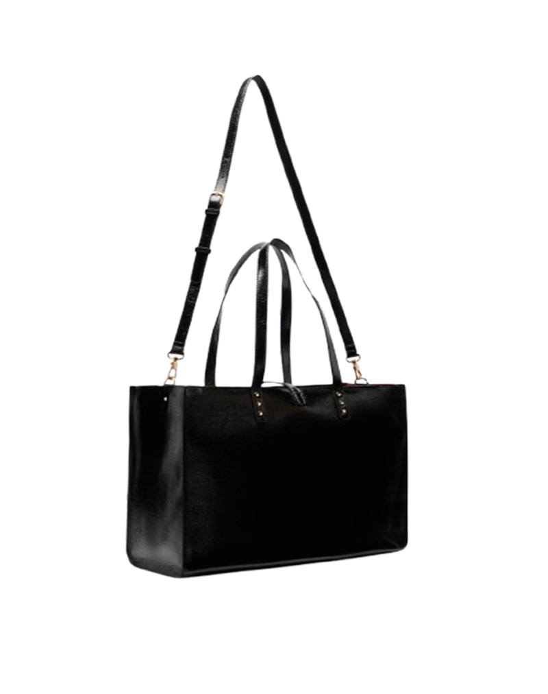 Borsa Donna modello shopper, realizzata in similpelle monocolore, dall'effetto lucido. Presenta due comodi manici a spalla ed una pratica chiusura con zip, ideale per tenere al sicuro tutti i tuoi oggetti. Lo charm in metallo dorato ed il cinturino decorativo donano alla borsa un tocco di stile in più. Una borsa capiente con dimensioni 40 x 15 x 29 cm, per tutti i giorni.