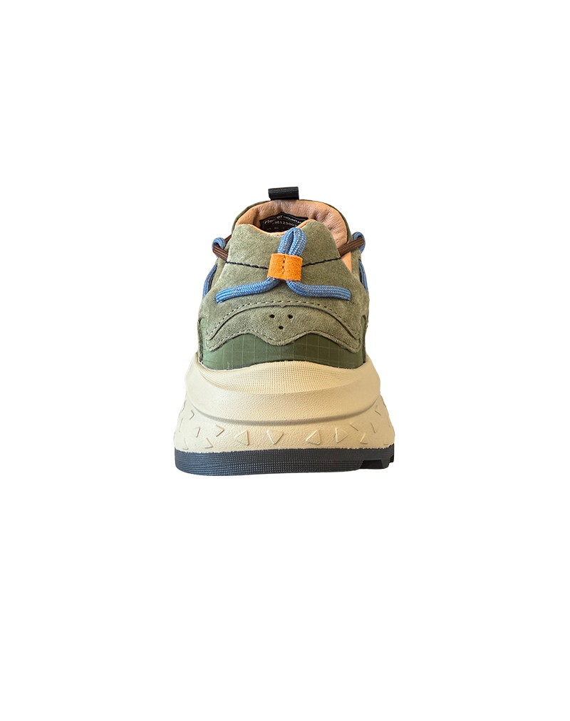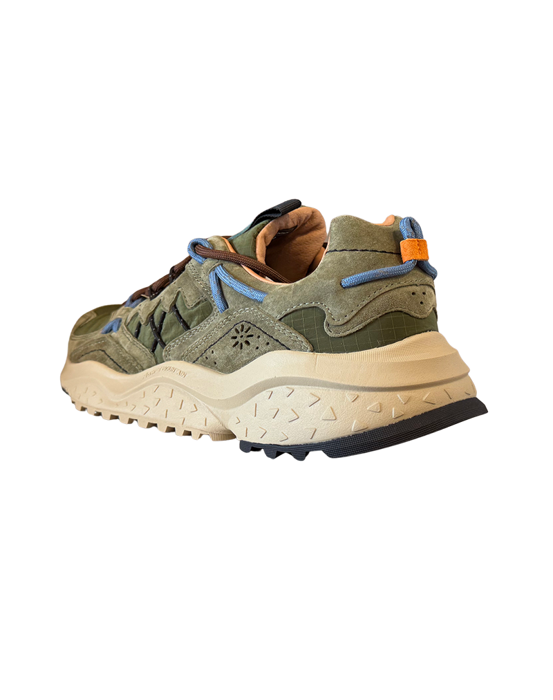 La Sneakers Uomo Yamabushi è realizzata con una tomaia in tessuto ripstop tecnico con inserti in suede sovrapposti. La chiusura con lacci rimanda ad una scarpa da trekking, ma con un design più moderno. La soletta interna in sughero naturale è anatomica, mentre la suola in EVA combinata con gomma garantisce leggerezza e durata. Pensata come una scarpa trail running è comoda e versatile.