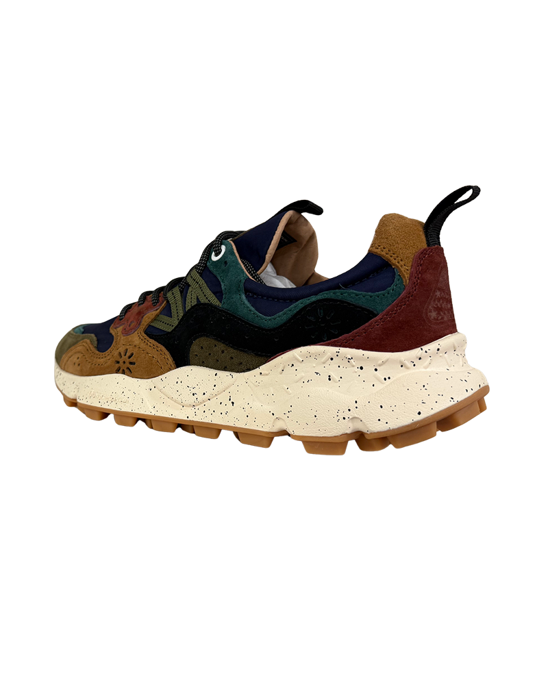 La Sneakers Uomo, modello Yamano 3, è realizzata con una tomaia in tessuto tecnico leggero ed inserti in suede. La chiusura con lacci ed occhielli rinforzati rimanda ad una scarpa da trekking, ma con un taglio moderno. La soletta interna in sughero naturale è ergonomica, mentre la suola in gomma ultraleggera garantisce la massima aderenza su ogni tipo di terrno. Una sneakers da indossare con un jeans, un pantalone tecnico o con un capo più ricercato per chi ama osare.