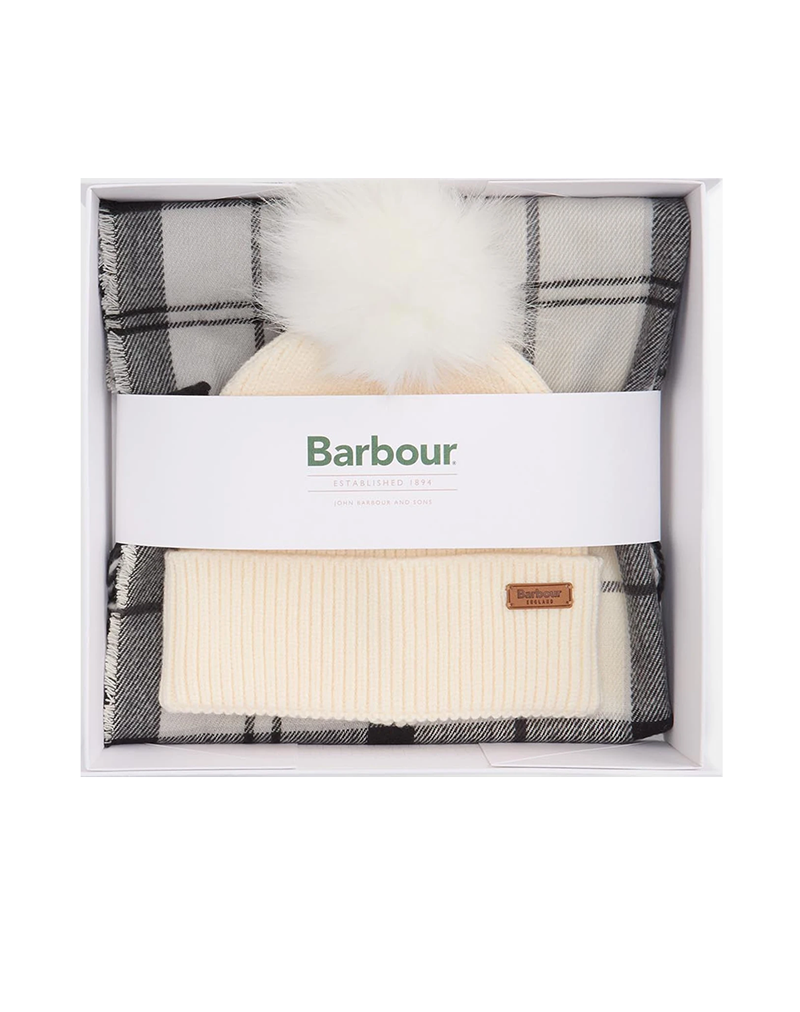 Il Set regalo Donna è composto da: un cappello realizzato in morbida maglia tinta unita, con pompon di pelliccia sintetica e risvolto sul fondo ed etichetta logo; da una sciarpa con motivo tartan iconico del brand, realizzata in misto viscosa , con fondo sfrangiato. Dimensioni sciarpa: 183 x 50 cm.