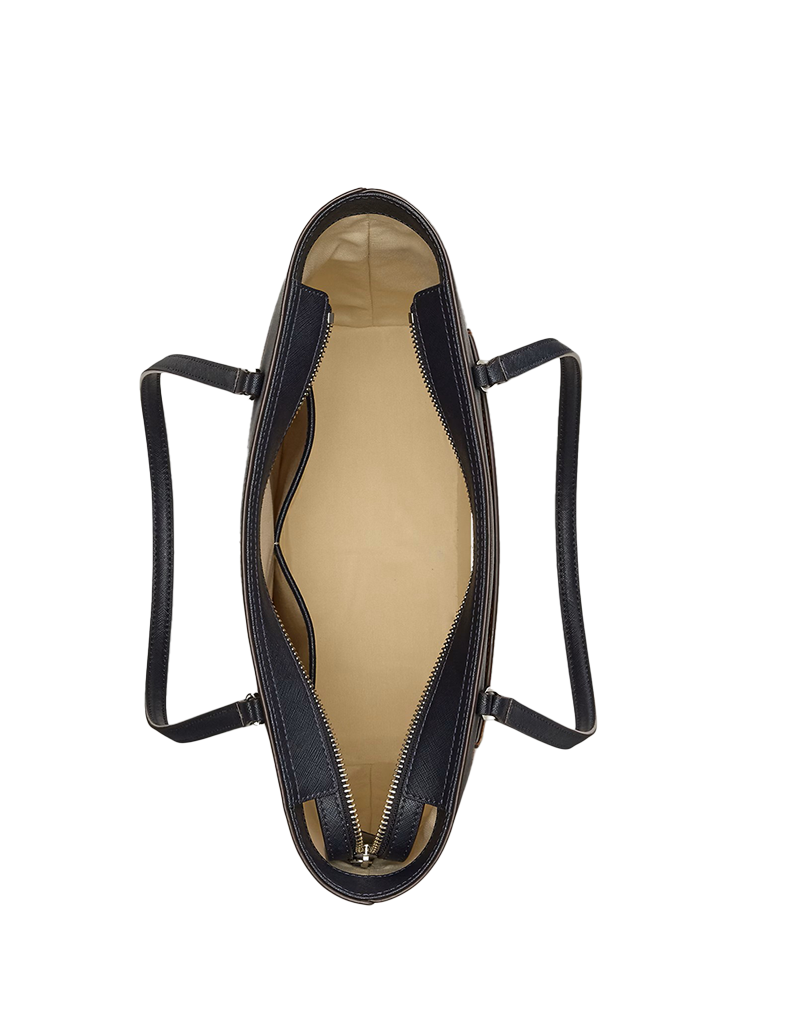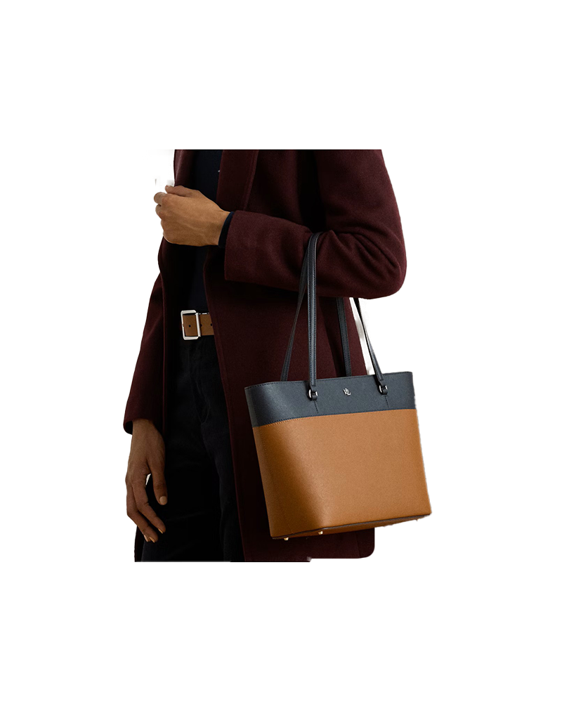 Fantastica borsa della linea LRL in vera pelle con motivo tratteggiato. Chiusa superiormente da zip metallica e dotata di doppi manici. Logo "Lauren Ralph Lauren" a stampa laminata sulla tasca esterna. Placca in metallo con incisione "Lauren Ralph Lauren est. 1967" all'interno.Tasca esterna a bustina. Tasca con cerniera e due tasche a bustina all'interno.Misure 22,9 cm A x 33 cm L x 10,8 cm P.. Fodera realizzata con poliestere e poliestere riciclato. Sacchetto protettivo incluso.