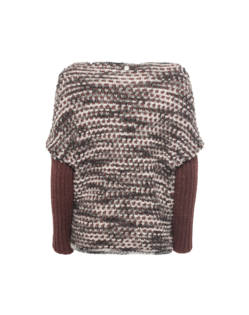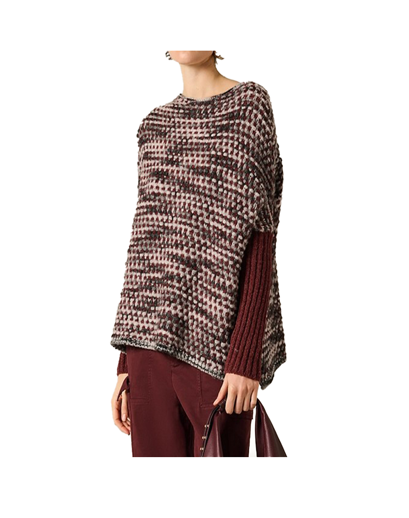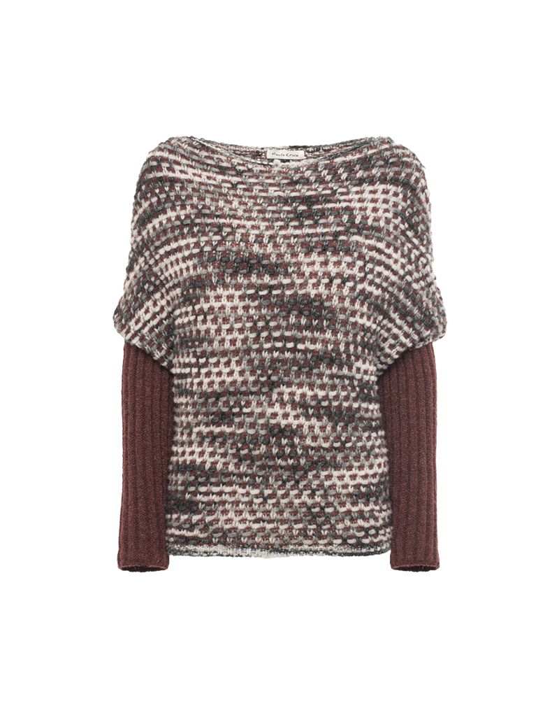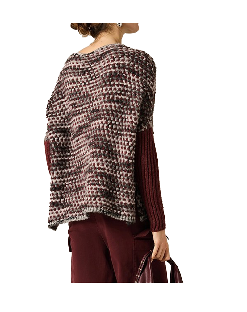 Maglione di Manila Grace super glamour grazie alla particolarità di una lavorazione a nido dape multicolor in contrasto con le maniche a costina tinta unita. Il fit morbido del busto si sposa perfettamente con l' aderenza delle maniche , creando un effetto visivo tipo sovrapposizione . Perfetto per chi ama distinguersi indossando un capo particolare e ricercato e per chi ama i dettagli artigianali e le texture sorprendenti. Composizione tessuto 48% LANA, 26% POLIAMMIDE, 23% POLIACRILICO, 3% VISCOSA.