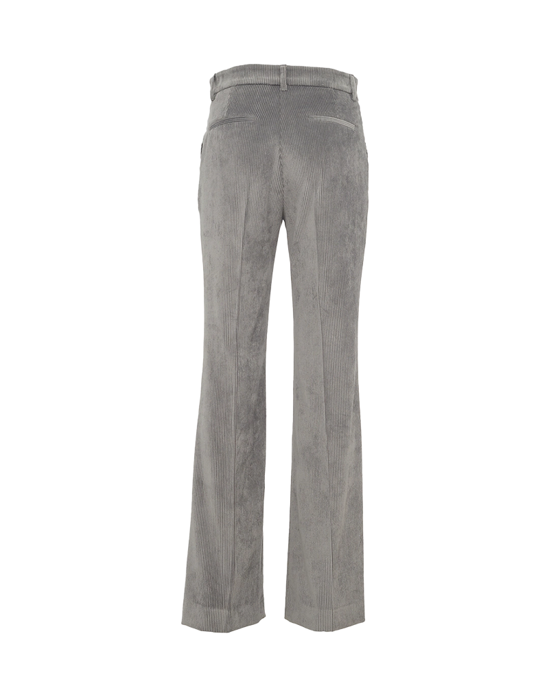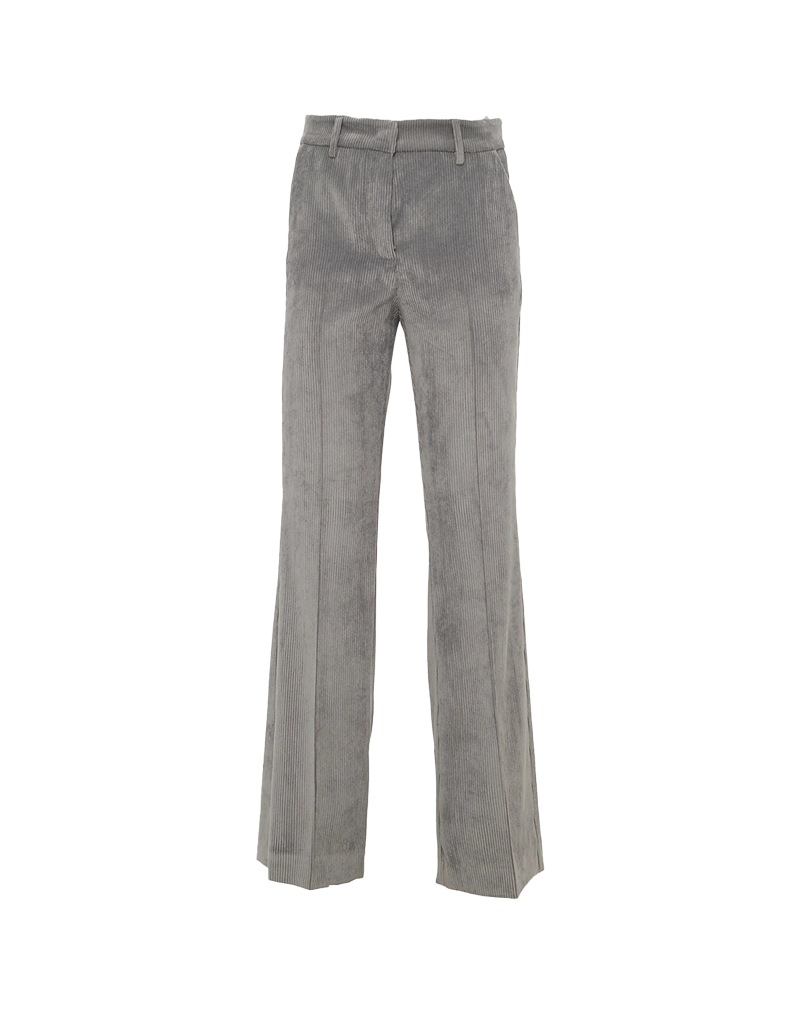 Pantalone donna realizzato in morbidissimo velluto a coste leggermente elasticizzato , per donare il massimo comfort di movimento. Il taglio leggermente svasato sul fondo slancia la figura e permette di utilizzare questo pantalone con uno stivaletto e un blazer per un look più classico o con una sneakers e un maglioncino per vivere la giornata con stile e praticità.