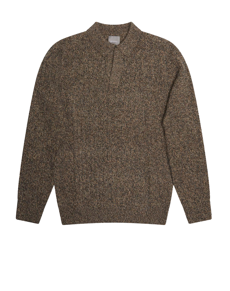 MAGLIONE UOMO A POLO IN LANA LAMBSWOOL - CACAO