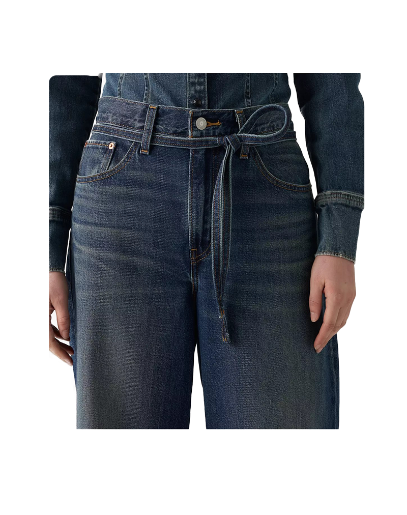 Jeans 5 tasche donna in denim non elasticizzato dal taglio over size con gamba dritta e ampia . La vita alta è rifinita da una sottile cintura in denim rimovibile ,per regolare la vestibilità, ed adattarlo a tutti i gusti. Lunghezza gamba 31. Composizione tessuto 100% cotone.