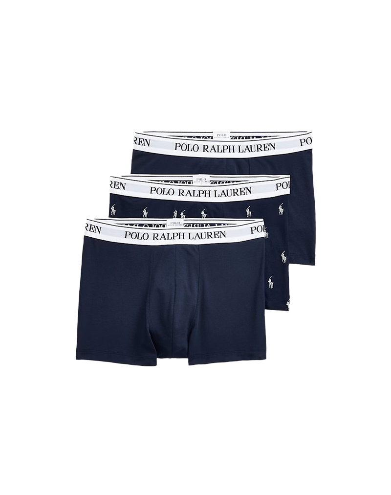 Confezione da 3 paia di boxer uomo con tasca ergonomica e tessuto in cotone elasticizzato per una vestibilità ottimale. La confezione include due boxer tinta unita blu e un boxer fondo blu e fantasia all over . L' elastico con scritta POLO RALPH LAUREN rifinisce il tutto . Composizione tessuto 95% cotone 5% elastan.