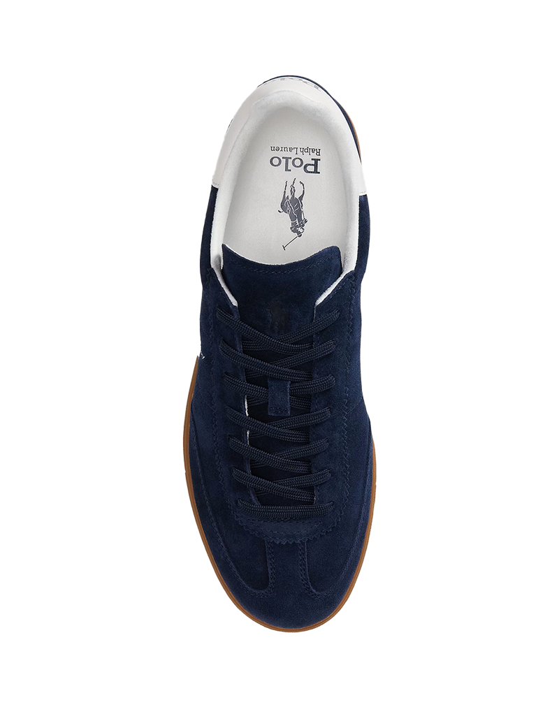 Super classico di Ralph Lauren , la sneaker Bedford da uomo , si ispira alle storiche scarpe da tennis degli anni '80. La tomaia ,in morbidissimo camoscio blu , presenta dettagli in contrasto di colore bianco come il logo iconico Ralph Lauren ricamato lateralmente e il talloncino posteriore in pelle liscia con logo POLO impresso . L' interno presenta una soletta in microfibra e un tallone rinforzato. Una curiosità presente sulla suola in gomma è un omaggio alla strada parigina che ospita lo storico store del Brand Ralph Lauren . Calzata regolare. Secondo laccio bianco in dotazione .