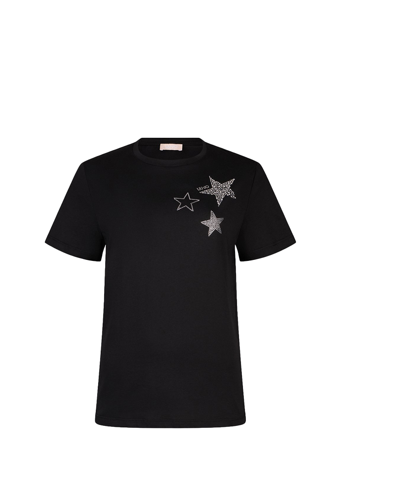 T-SHIRT DONNA CON APPLICAZIONI STELLE - NERO