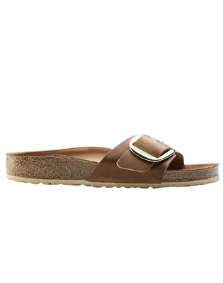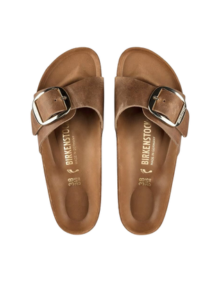 SANDALO DONNA " MADRID BIG BUCKLE " IN PELLE OLIATA - COGNAC