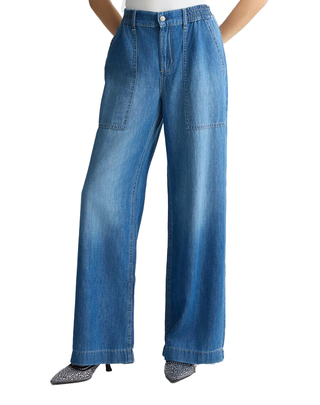 JEANS DONNA WIDE LEG CON ORLO SFRANGIATO
