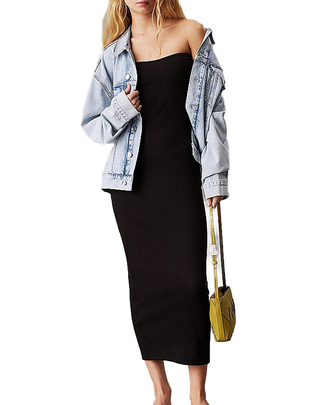 ABITO SENZA SPALLINE IN COSTINA DI COTONE ELASTICIZZATO- NERO