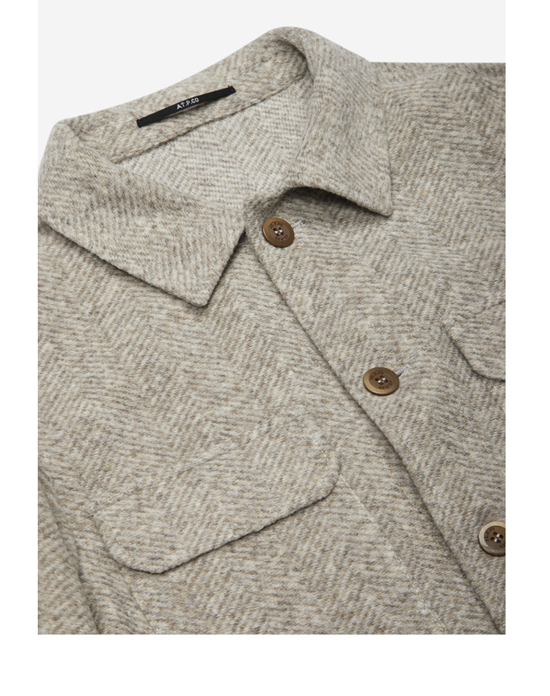 La giacca da uomo Orlando presenta un taglio camicia in super tendenza . Realizzata in tessuto spigato misto lana, presenta un collo classico, chiusura frontale con bottoni, tasche applicate con patta sul petto e tasche laterali a filetto. Il tutto è rifinito dai polsini con bottone . Da utilizzare per uno stile casual e ricercato.