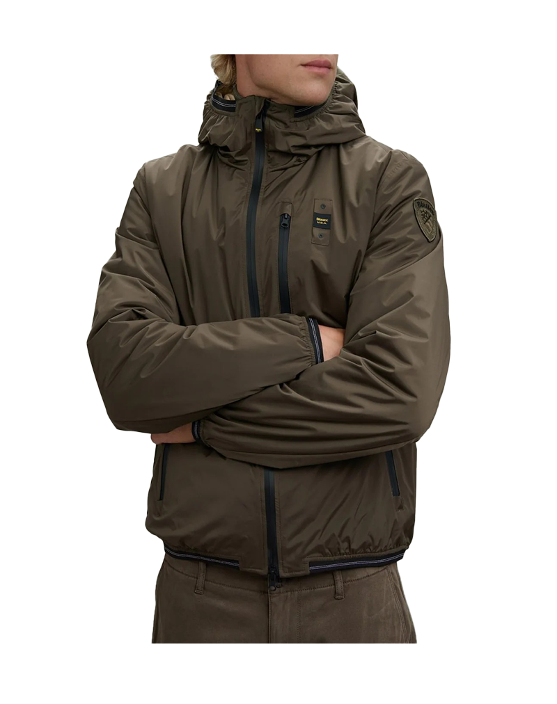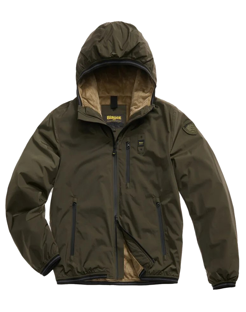 Giubbino corto uomo ideale per i primi freddi ,costruito in tessuto idrorepellente liscio esternamente ma con imbottitura in leggera ovatta foderata in pelliccia ecologica morbida e calda allinterno. Le cuciture interne nastrate thermofix garantiscono il massimo isolamento contro pioggia e vento. Cappuccio fisso. Chiusura con zip spalmata in contrasto colore. Copri coulisse sul collo. Elastico rigato sul bordo del cappuccio, del fondo e della manica. Tasche con zip spalmata. Tasche interne con velcro. Patch e passante con logo.