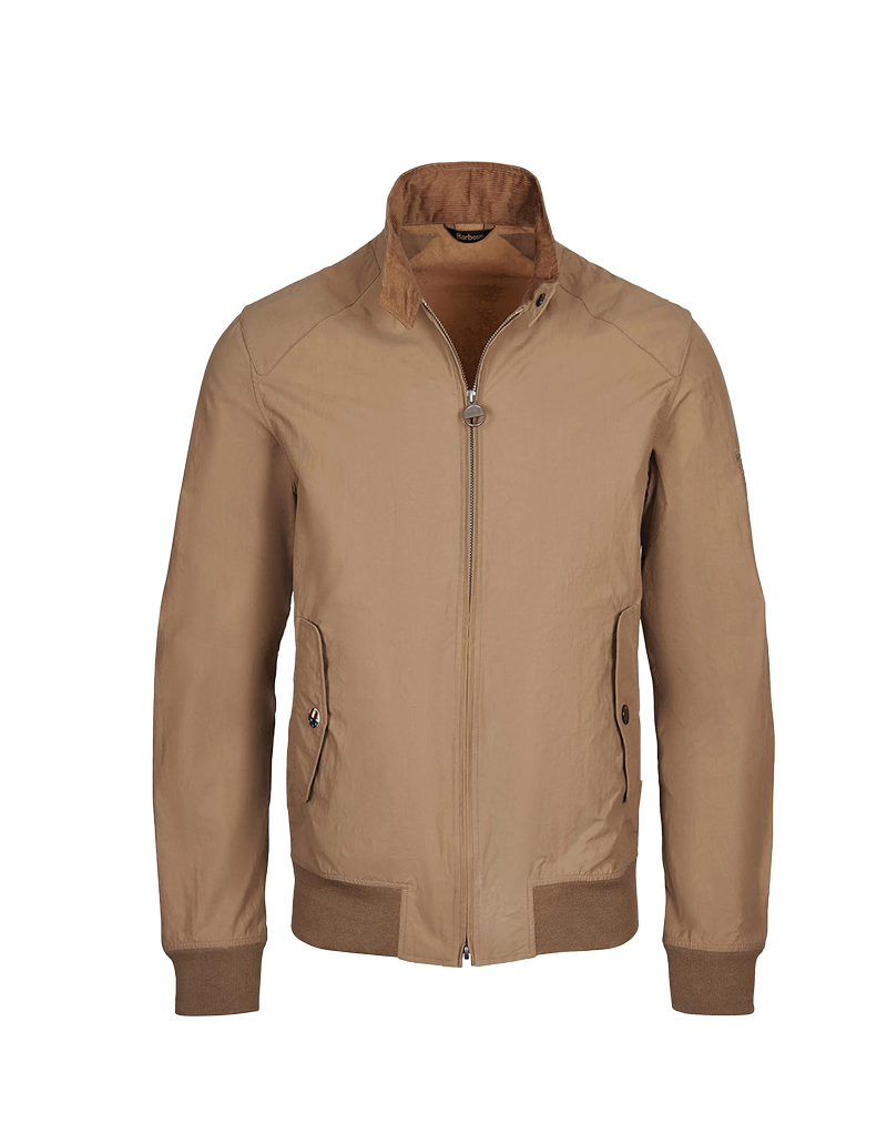 Giubbino uomo della collezione Barbour International ispirato allintramontabile modello Harrington. Chiuso anteriormente da zip, presenta due tasche chiuse da patta con bottoni e un colletto foderato in microcosta di velluto. Il bordo inferiore e i polsini gli conferiscono una vestibilità asciutta . Iconico il patch ricamato sulla spalla Steve Mcqueen in tonalità di colore. Ideale per la mezza stagione .