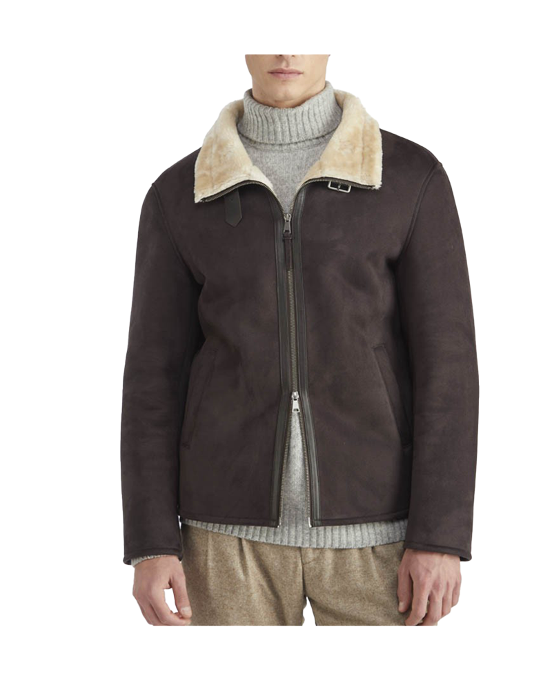 Giubbino uomo con finitura esterna effetto suede e interno in contrasto chiaro in eco pelliccia. Un giubbino pratico e stiloso che ti garantirà un buon effetto calore senza rinunciare ad uno stile contemporaneo e casual. Chiusura con zip centrale e collo a camicia . Due pratiche tasche a filetto sui fianchi.