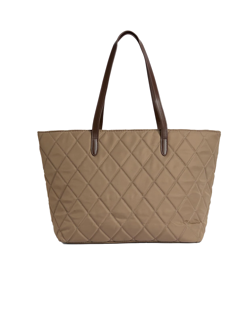 Borsa Donna della linea Quilted realizzata in nylon con impunture a rombi. Presenta due manici a spalla, una pochette interna rimovibile e due tasche tasche frontali. Completano la borsa una chiusura zip ed una tasca interna per garantire la massima organizzazione. Dimensioni: 29 x 47,5 x 13 cm.